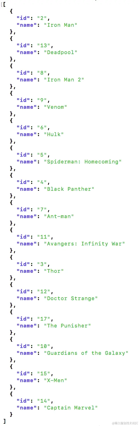 findAll端点的以下 cURL 命令来验证电影是否已被删除: