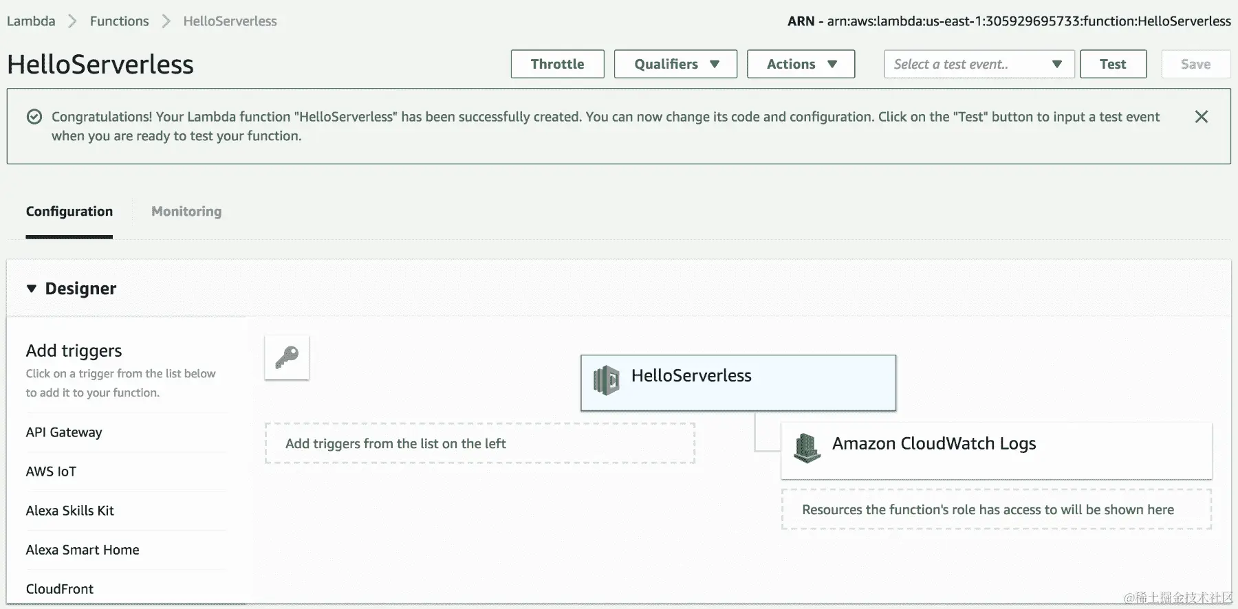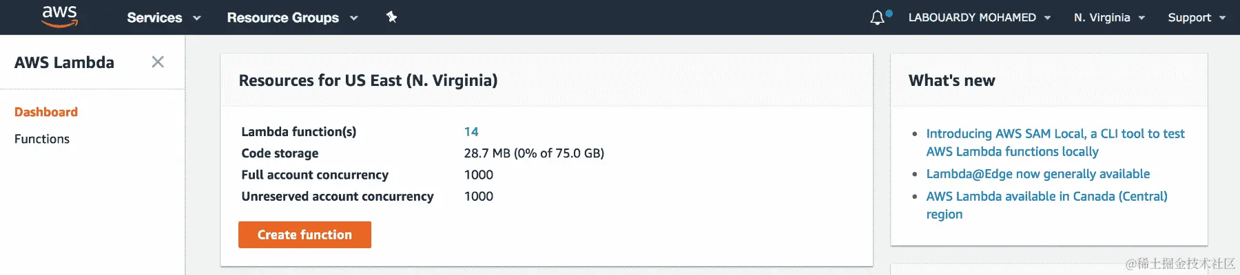 - 返回 Lambda 控制台。应该已创建一个