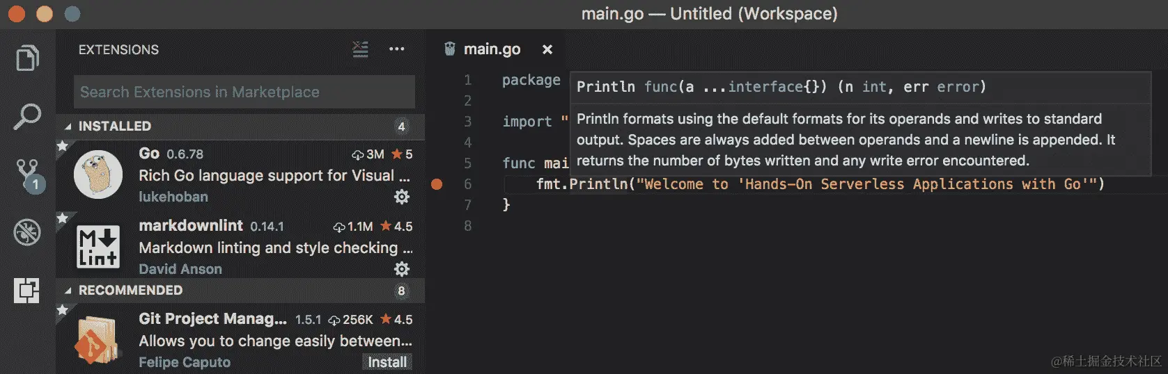 fmt.Println("Welcome to 'Hands-On serverless Applications with Go'")