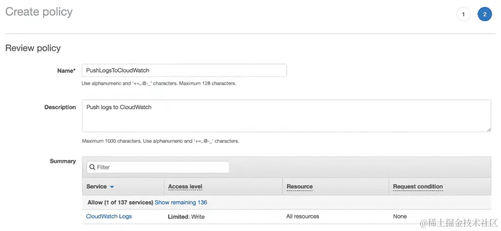 以下截图显示 IAM 角色已更新以处理PutItem操作的权限:
