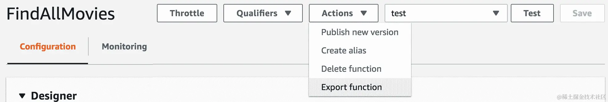 要开始,请从 Lambda 函数的配置页面启用主动跟踪: