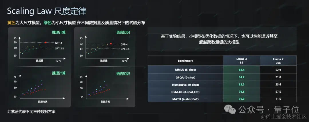 因此,尺度定律是可以指导在有限的研发资源中,找到最优的模型架构和数据配方,让大模型能够高效地去学习。