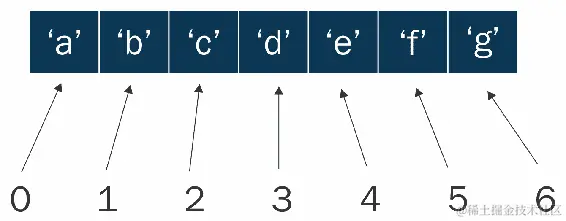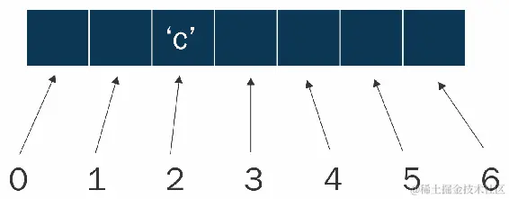 我们的数组基本上是一个足够大的内存块,可以存储七个单独的字符。