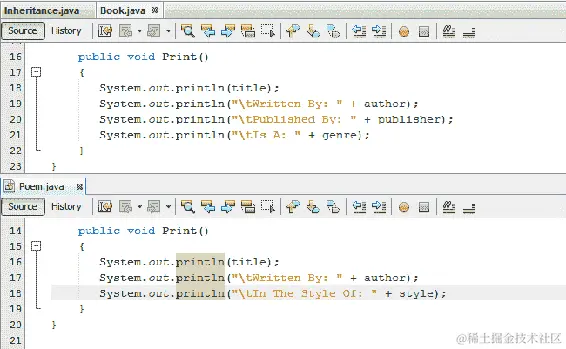 如果我们开始通过调用super.Print来开始Print方法,而不是在前面的截图中显示的原始显式打印行,我们将从我们的Print方法中获得相同的行为。现在,当Poem的Print方法运行时,它将首先调用超类的,也就是Literature.java类的Print方法。最后,它将打印出Poem类的风格,这种风格并不适用于所有文学作品。