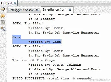 所以让我们看看我们是否成功声明了我们的Poem和Literature关系。让我们回到我们程序的Inheritence.java类的main方法,看看这个程序的诗歌部分是否像以前一样执行: