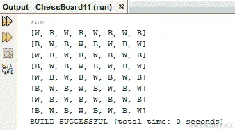 让我们首先声明并初始化我们将要使用的数组。我们将使用字符数组来完成这个任务,给白色方块赋予字符值W,给黑色方块赋予字符值B。由于国际象棋棋盘是一个八乘八的网格,我们将声明一个包含八个数组的二维数组,每个数组应包含八个字符: