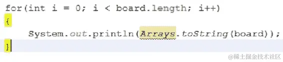 现在,要完成我们的程序,我们需要做的就是打印出我们的alpha数组。为此,让我们利用一个始终可访问的对象中的一个巧妙的函数,称为Arrays。Arrays.toString()函数将转换为字符串的单维数组(这是我们创建的数组的类型),可以转换为字符串: