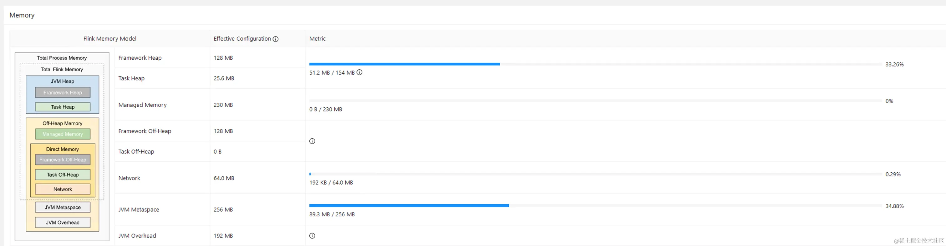 JVM Metaspace:256M JVM Overhead:占比0.1 阈值范围192M-1G