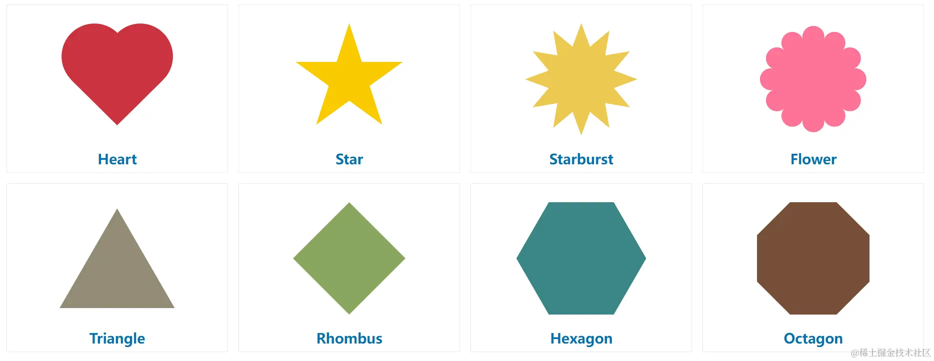 - CSS 形状集合:CSS 单元素实现各种形状。有很多选择,包括一些相当新颖的形状。一键复制代码!