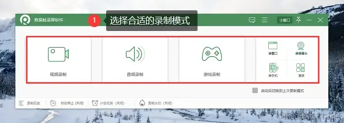 步骤1:双击软件图标或从开始菜单中选择打开,启动软件后,即可看到简洁直观的录制界面,这里可以选择自己需要的录制模式。