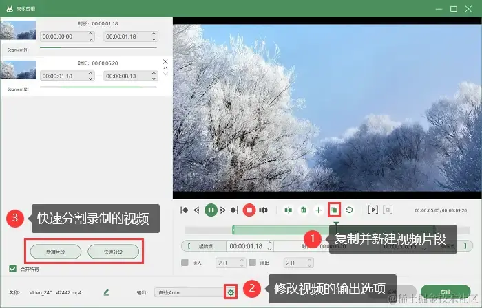 步骤4:录制过程中可以通过 “Ctrl+Shift+R” 暂停录制,录制结束后,在高级剪辑功能中还可以对视频进行更多操作。