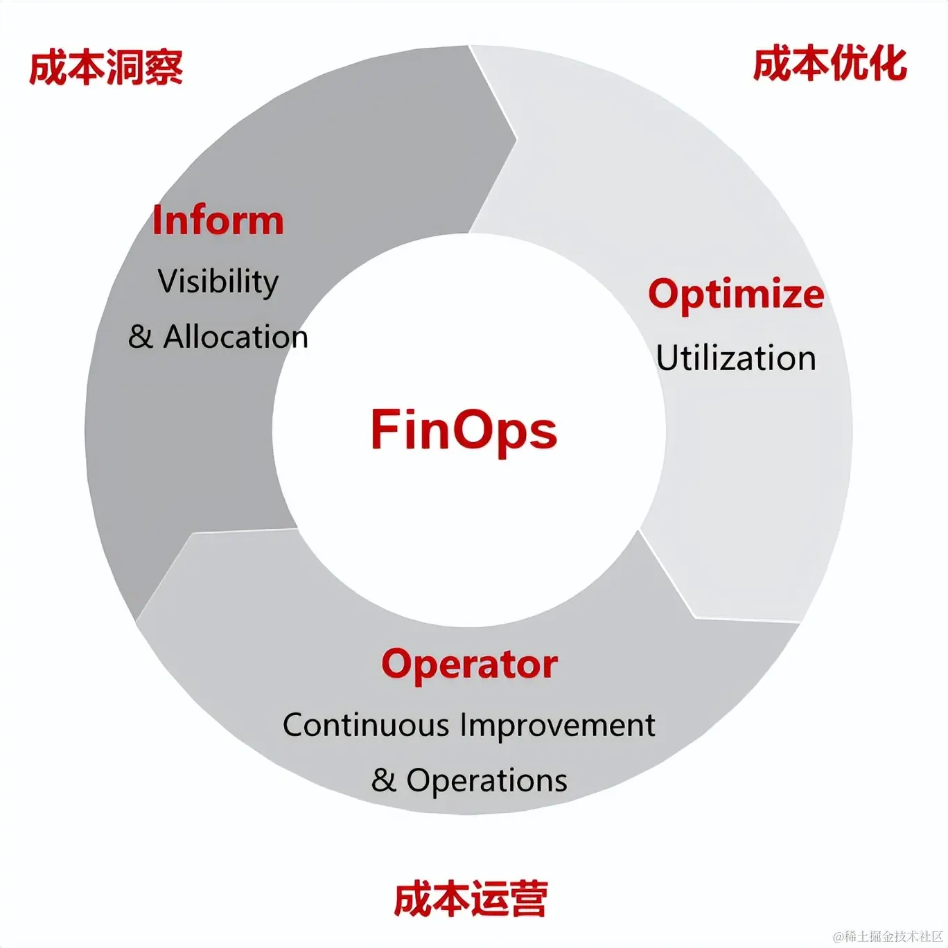 FinOps Foundation 将 FinOps 定义为三个阶段:通知、优化和运营。根据每个团队或企业完成 FinOps 的进度,公司可能会同时处于多个阶段。