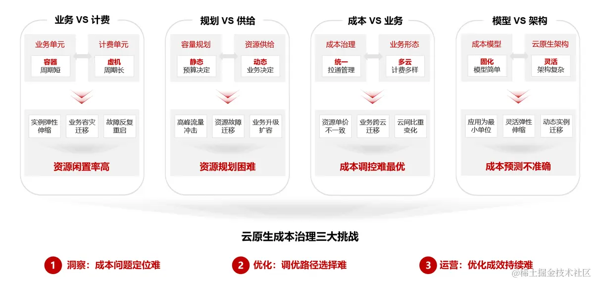云原生时代成本治理有四个矛盾点: