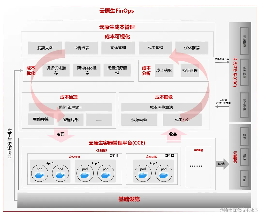 华为云云原生FinOps解决方案,参照业界FinOps标准与最佳实践,为用户提供云原生成本多维可视化与多种成本优化治理手段,协助客户最大化的收入或业务价值。