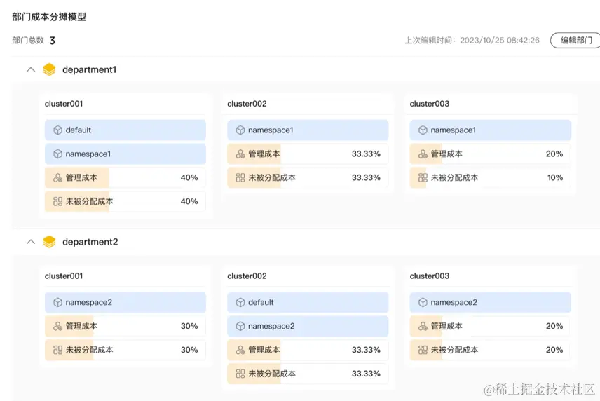 华为云CCE云原生成本治理支持基于部门的成本分摊策略配置,如下图所示: