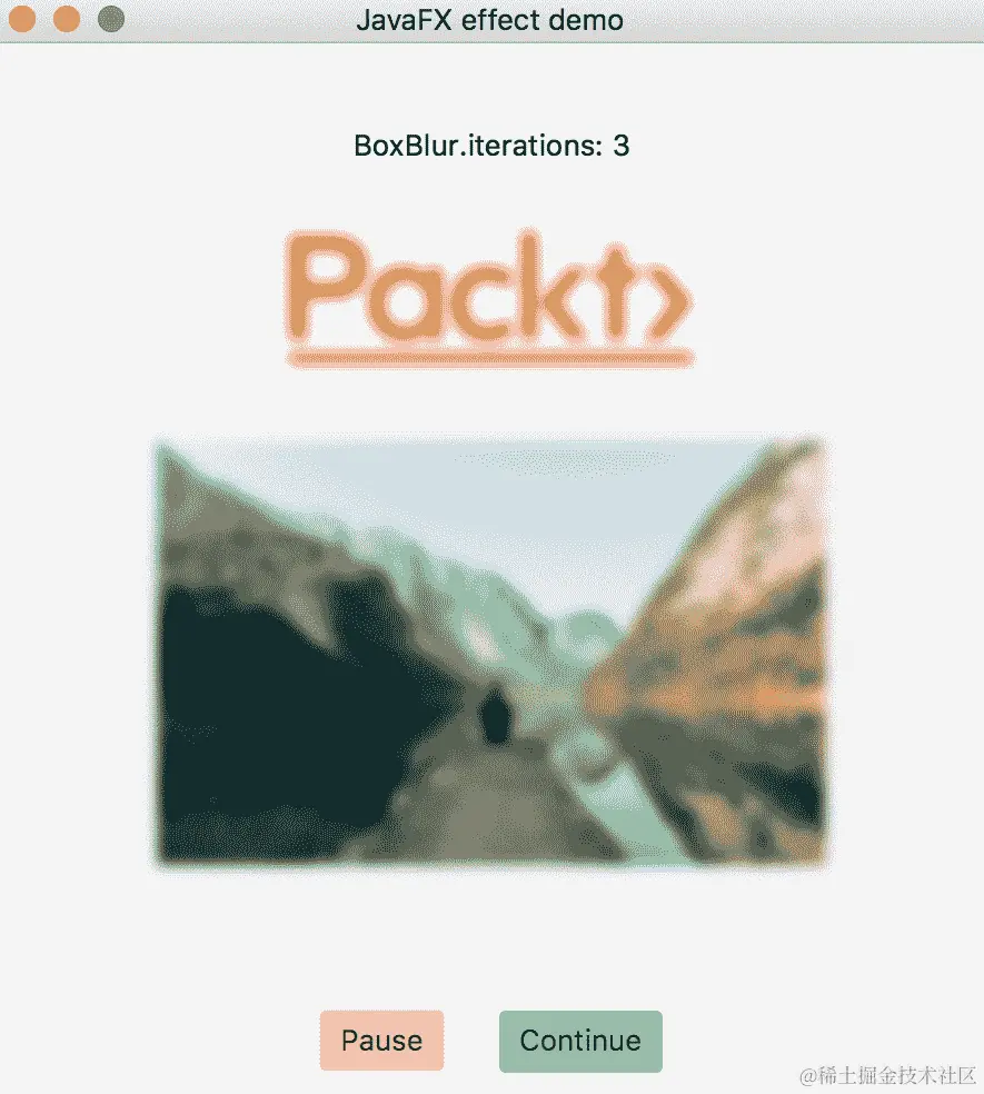 HelloWorld、BlendEffect、OtherEffects每个类都有几个start()方法:start1()、start2()等,运行一次该类后,将start()重命名为start1()、start1()重命名为start(),再运行上述命令。然后将start()重命名为start2(),将start2()重命名为start(),再次运行上述命令。以此类推,直到所有的start()方法都被执行。这样,您将看到本章所有示例的结果。