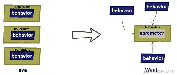 这被称为行为参数化,如下图所示(左侧显示我们现在拥有的;右侧显示我们想要的):