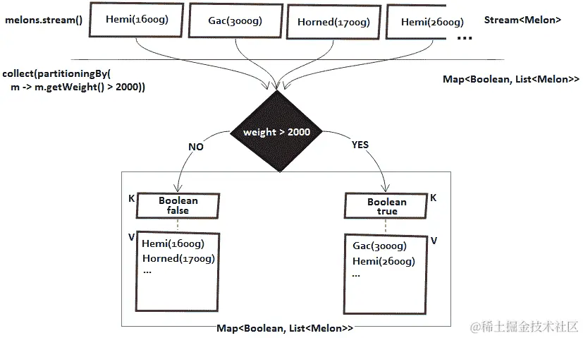 例如,假设我们要过滤重量超过 2000 克的西瓜。为此,我们可以写一个Predicate,如下所示: