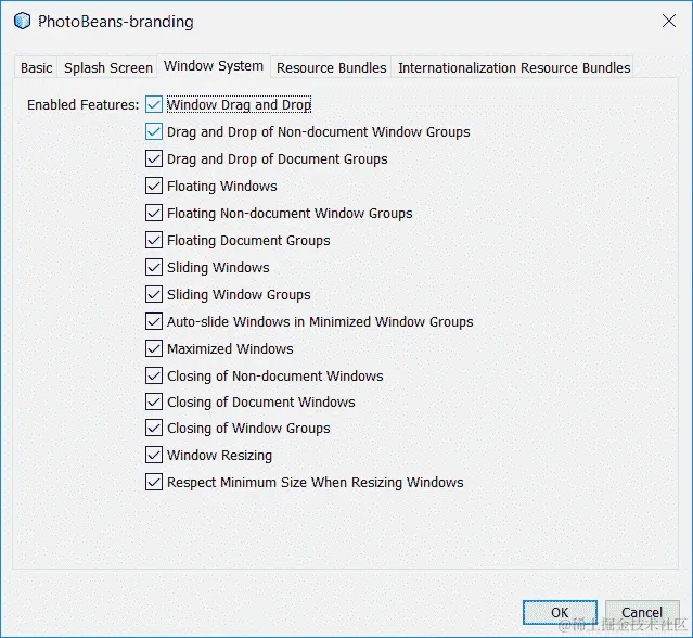 目前对我们感兴趣的唯一其他选项卡是“窗口系统”选项卡。在这个选项卡中,我们可以配置一些功能,比如窗口拖放、窗口滑动、关闭等等: