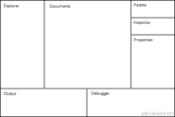 调试器: 这用于所有调试器窗口和其他需要水平布局的支持窗口