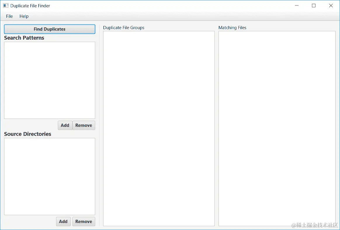 我们创建了FileFinder实例,使用流和 lambda 设置路径和模式,然后开始搜索过程。当搜索完成时,我们通过getDuplicates()获取重复文件信息列表,然后使用映射的键创建一个新的ObservableList<String>实例,然后将其设置在dupeFileGroupListView上。