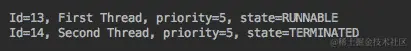 线程的id是自动生成的,不能更改,但在线程终止后可以重新使用。另一方面,可以为多个线程设置相同的名称。执行优先级可以通过编程方式设置,其值介于Thread.MIN_PRIORITY和Thread.MAX_PRIORITY之间。值越小,线程被允许运行的时间就越长,这意味着它具有更高的优先级。如果没有设置,优先级值默认为Thread.NORM_PRIORITY。