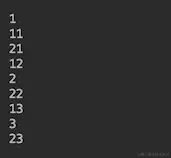 第一个线程生成整数1、2和3,第二个生成整数11、12和13,第三个线程(主线程)生成21、22和23。