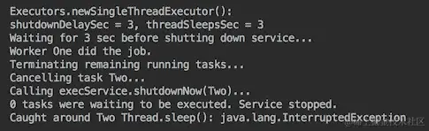 System.out.println("Caught around execService.awaitTermination(): "