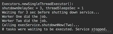 +" tasks were waiting to be executed. Service stopped.");