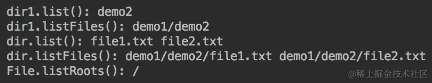 String[] list():返回目录中文件和目录的名称File[] listFiles():返回File表示目录中文件和目录的对象static File[] listRoots():列出可用的文件系统根目录
