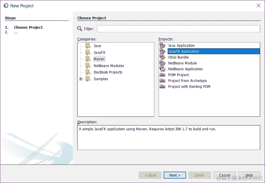 要开始构建函数,我们需要创建一个 Java 项目。和我们的其他项目一样,这将是一个多模块的 Maven 项目。在 NetBeans 中,点击文件 | 新建项目 | Maven | POM 项目。我们将称之为CloudNotice项目。