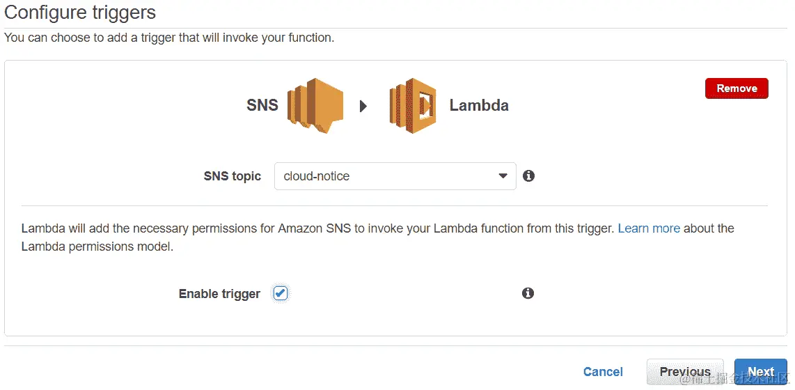 最终,我们希望我们的函数在将消息传递到 SNS 主题时被触发,因此我们将SNSEvent指定为输入类型。我们还指定Context。我们可以从Context中获取几件事情,比如请求 ID,内存限制等,但我们只对获取LambdaLogger实例感兴趣。我们可以直接写入标准输出和标准错误,这些消息将保存在 Amazon CloudWatch 中,但LambdaLogger允许我们尊重系统权限和容器配置。