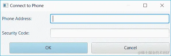 我们将使用现在熟悉的showAndWait()模式来显示模态对话框,并使用新的ConnectToPhoneController获取响应。用户界面非常简单,如下截图所示: