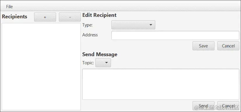 我们有一些新的类要看,但首先要总结一下这段代码,我们将获得一个Recipient实例列表,它代表了已订阅我们服务的号码和电子邮件地址。然后我们从列表中创建一个流,过滤每个接收者类型,SMS或Email,通过map()提取值,然后将它们收集到一个List中。
