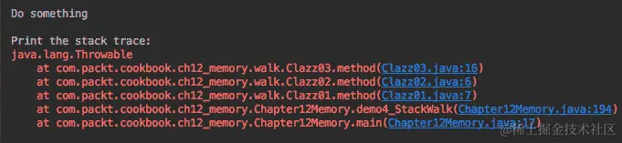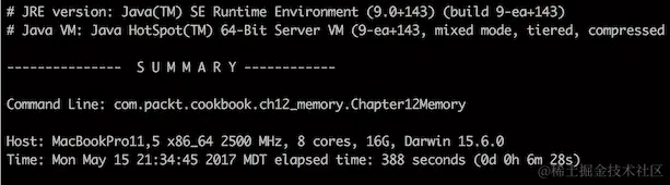 在您的计算机上,前面的命令的输出可能会有所不同。在我们的测试运行期间,当我们使用指定的java命令参数执行前面的程序时,输出以以下四行开头: