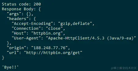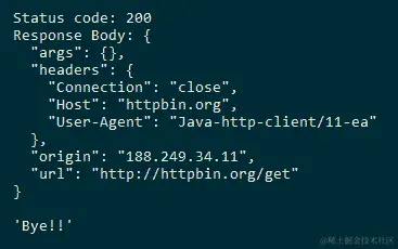 在本示例中,我们将使用 JDK 11 的 HTTP 客户端 API 发出对httpbin.org/get的GET请求。
