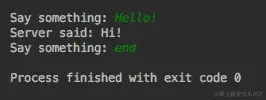 我们希望我们的客户端在建立连接后发送消息。然后,它将从服务器接收(相同的)消息,显示它,并发回另一条消息,依此类推,直到它被关闭。以下代码调用我们创建的客户端:
