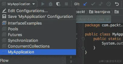 main()方法后,类的名称将添加到下拉菜单(在绿色三角形左侧的顶行上):