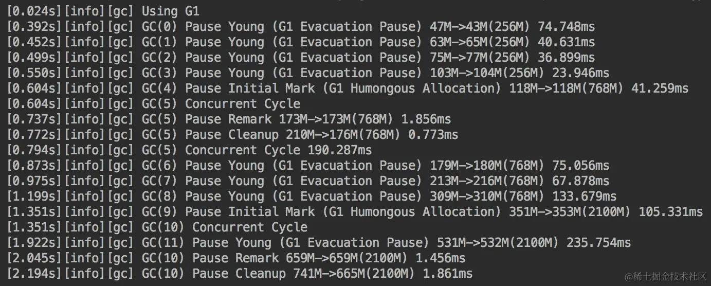 前面的序列可能会与年轻一代的疏散交错,因为大多数对象的生命周期很短,通过更频繁地扫描年轻一代来释放大量内存更容易。还有一个混合阶段(当 G1 收集已标记为大部分垃圾的区域,既在年轻一代又在旧一代)和巨大分配(将大对象移动到或从巨大区域疏散)。