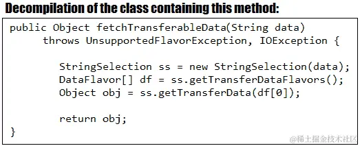var obj = stringSelection.getTransferData(dataFlavorsArray[0]);
