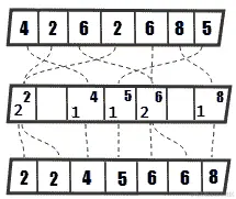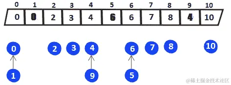 位可以在线性时间或O(n log n)中构造。显然,我们更喜欢线性时间,所以让我们看看如何做到这一点。我们从给定的(原始)数组开始,该数组可以是(下标表示数组中的索引):