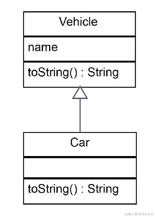 让我们看看这将如何作为代码;我们将首先创建一个名为Vehicle的基类。该类有一个构造器,它接受一个String(车辆名称):