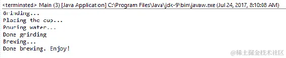 brewer.startBrewing(grinder.stopGrinding());