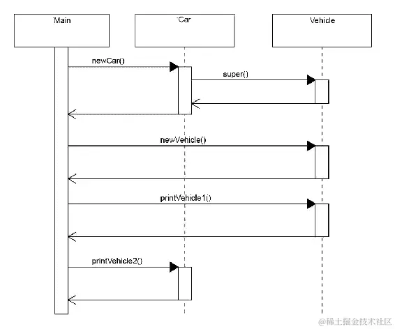 现在我们可以看到子类型多态在起作用。我们创建一个Vehicle对象和一个Car对象。我们将每个对象分配给一个Vehicle变量类型,因为一个Car也是一个Vehicle。然后我们为每个对象调用toString方法。对于vehicle1,它是Vehicle类的一个实例,它将调用Vehicle.toString()类。vehicle2是Car类的实例,调用Car类的toString方法: