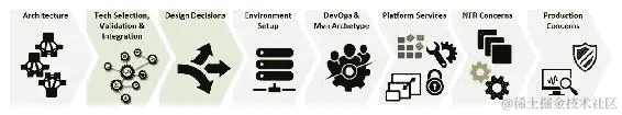 非功能性需求(NFR)问题:一旦关键平台服务就位,并且第一批应用程序开始接入平台,我们需要开始担心如何处理应用程序的 NFR 问题。应用程序如何根据传入负载进行扩展,如何检测故障,如何保持应用程序的最低阈值等等。同样,您可能希望将现有产品集成到您的平台,以提供/支持这些 NFR 问题。