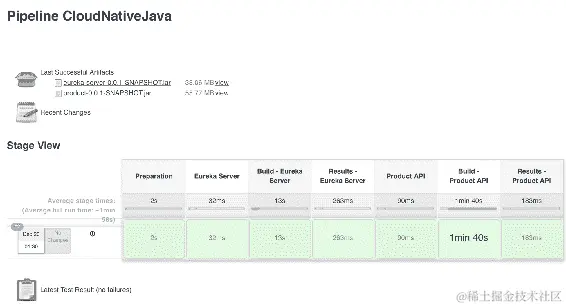 我们将以 Jenkins 流水线脚本为例,演示如何配置一个简单的构建流水线。在我们的示例中,我们将简单构建两个构件,即eureka-server和product-api可运行的 JAR 包。添加一个名为Jenkinsfile的新文件,内容如下: