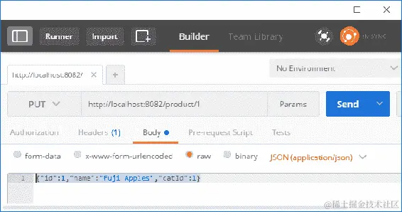 一旦服务开始监听端口,请在浏览器中发出查询:http://localhost:8082/product/1。这将返回以下内容: