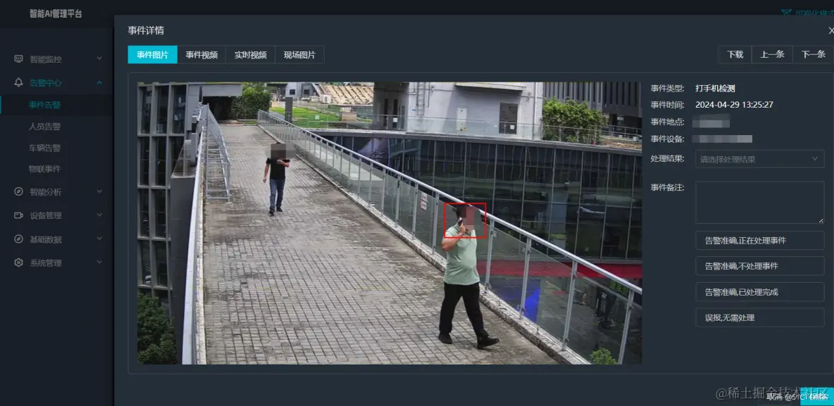 智能边缘分析一体机的打手机检测算法具有以下优势: