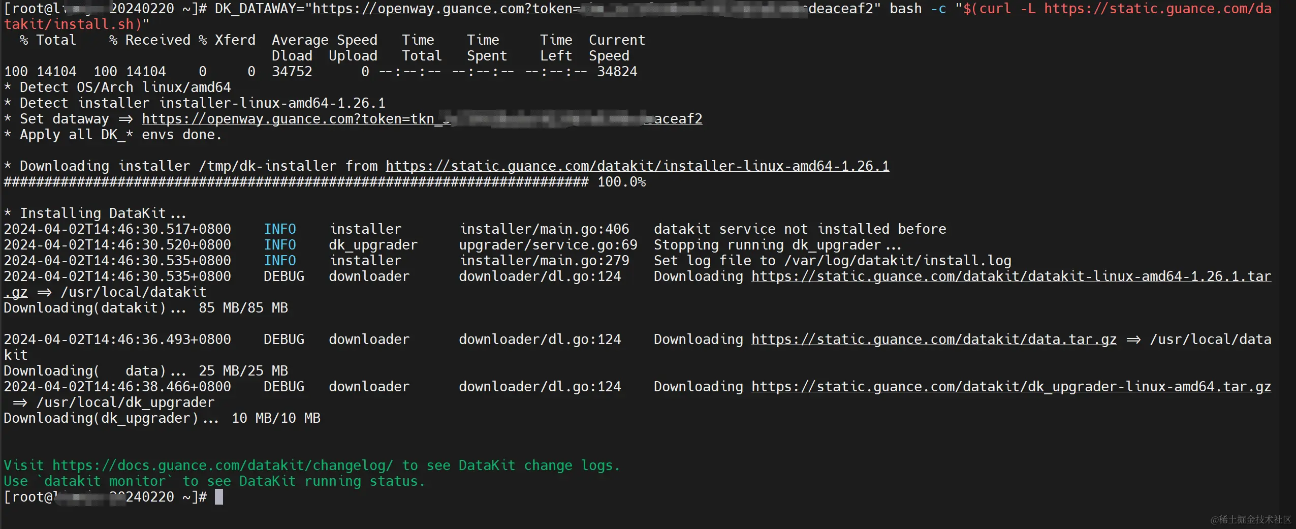 - 登录观测云控制台,点击[集成]->[DataKit]