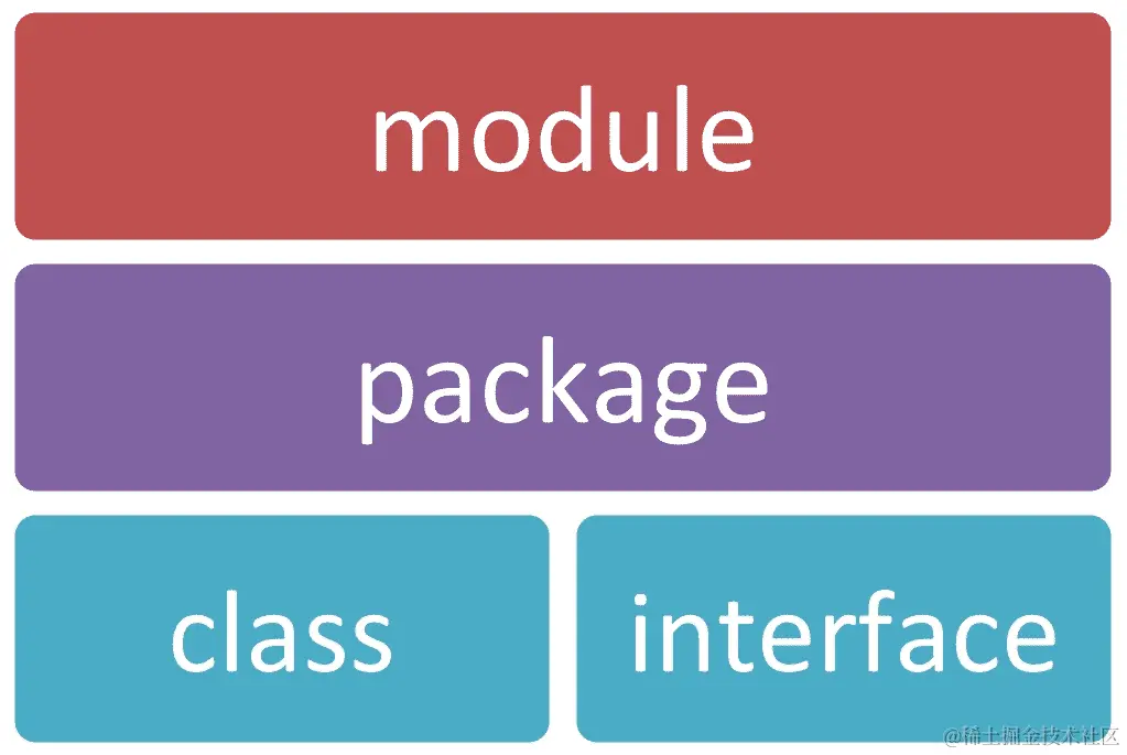 如下图所示,包由类和接口组成,模块由包组成。模块是包的容器。这是 Java 模块化系统的基本前提,在一个非常高的层次上。重要的是将模块视为模块化系统的一部分,而不是简单地将其视为包之上的新抽象级别,如下图所示: